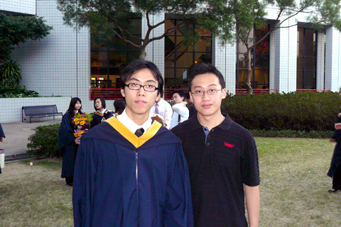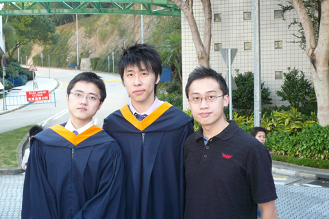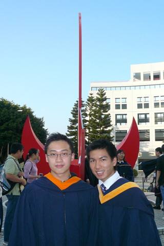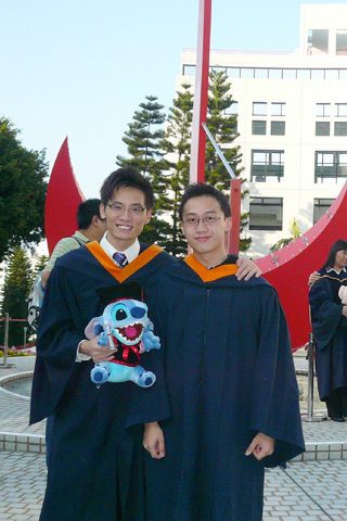 不過今次主角唔係我. 今日返科大搵師弟, 莊mate 同班 direct entry (其實只係同阿 sam )影相. 睇見大家著住件袍咁開心, 我又想著埋一份, 咁就搵左阿倫借件抱著左一陣, 過過隱~~