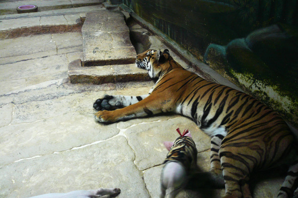 入到去最緊要都係抱下老虎仔~ 其他節目有: 睇一隻識計數o既聰明豬, 其實都唔係好叻o者~ train 左咁耐都淨係處理到 1 至 6 o既加減乘除... 但係有樣野幾得意, 就係同佢講廣東話, 普通話或者英文都得!