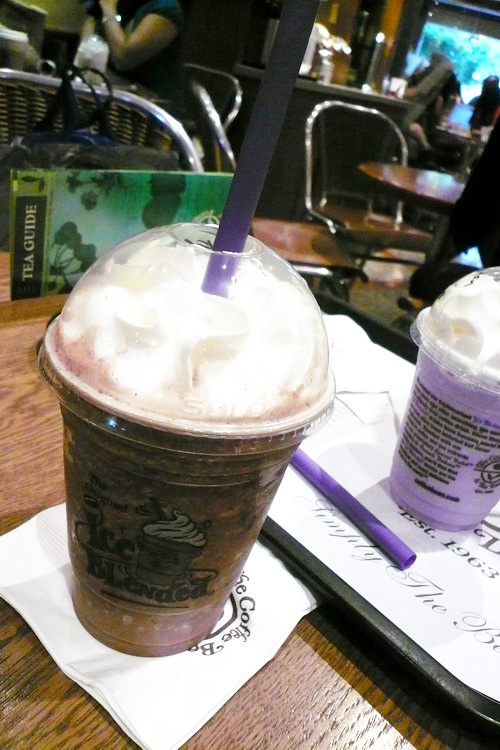 食完野, 飽飽啦~ 又見到 coffee shop, 又想飲, 咁就叫左杯 Ice Blended Black forrest Mocha, 咖啡入面有 d 車厘子, 怪怪地.